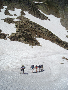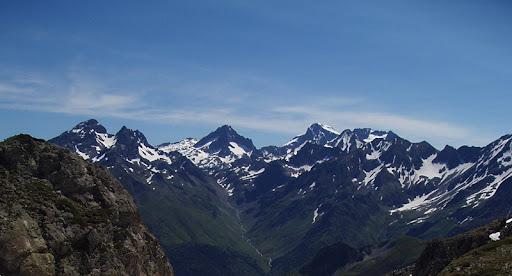 L’été est arrivé en début de semaine, suivi de près par de belles journées ensoleillées. La neige, encore présente sur le Rein de Pombie, au sommet de l’Ossau, est cependant bien remontée vers les sommets et les crêtes les plus élevées. L’occasion nous est ainsi offerte de gravir le pic de Peyreget avec une balade mixte à travers les pelouses bien fleuries du cirque d’Anéou, les neiges résiduelles, mais abondantes, sous le col de Peyreget et les pierriers chauffés au soleil de la descente vers le col de l’Iou.