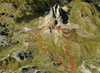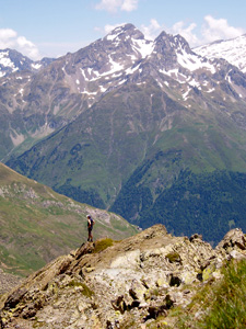 Le pic de Peyreget permet d’observer les faces Ouest des deux pics d’Ossau. Celle du petit pic verticale et sombre, étayée sur sa droite par l’élégante arête des Flammes de Pierre. Celle du grand pic, creusée en son milieu par le couloir enneigé du cirque d’Aragon ; à la gauche de ce dernier, l’impressionnante colonne rocheuse soutenant la pointe d’Espagne et à sa gauche les parois d’où nous parviennent les cris de deux cordées montant vers la pointe Jean Santé.