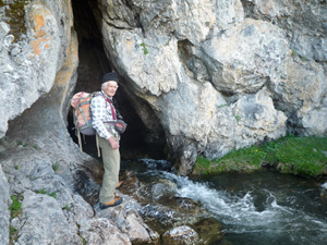 Nous prolongeons la balade par un long retour en traversant le haut du cirque d’Anéou où les jeunes pousses d’iris promettent une belle floraison pour le cœur de l’été naissant. De profondes ravines nous obligent à des descentes qui restent faciles bien que très raides parfois. Au flanc de la rive droite de celle située à droite du cirque, l’eau jaillit du marbre finement veiné. C’est la résurgence du ruisseau de la Glère qui, plus haut, disparaît dans un gouffre. A partir de ce coin discret, l’eau bleue s’échappe en cascadant rejoindre ses compagnes qui creuseront plus bas les gorges du Brousset.